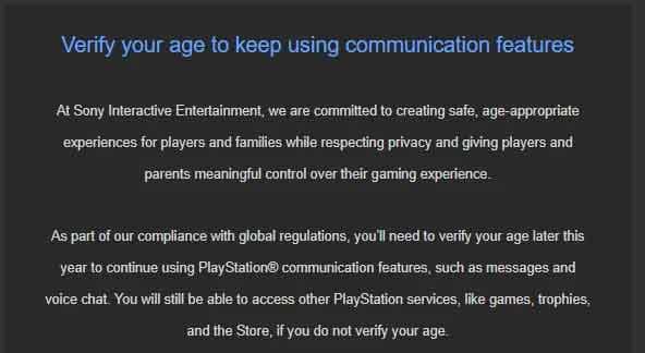 Sony Interactive Entertainment najavio je novu meru koja će uticati na način na koji igrači koriste online funkcije na PlayStation platformi. Kako je navedeno u novom email obaveštenju, korisnici će uskoro morati da potvrde svoje godine kako bi nastavili da koriste komunikacione opcije.